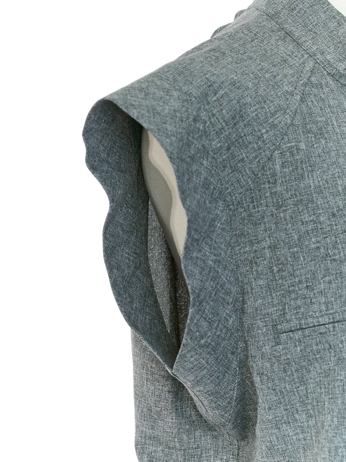ディティールをしっかり入れながらも、ウエスト絞りや肩回りがすっきり