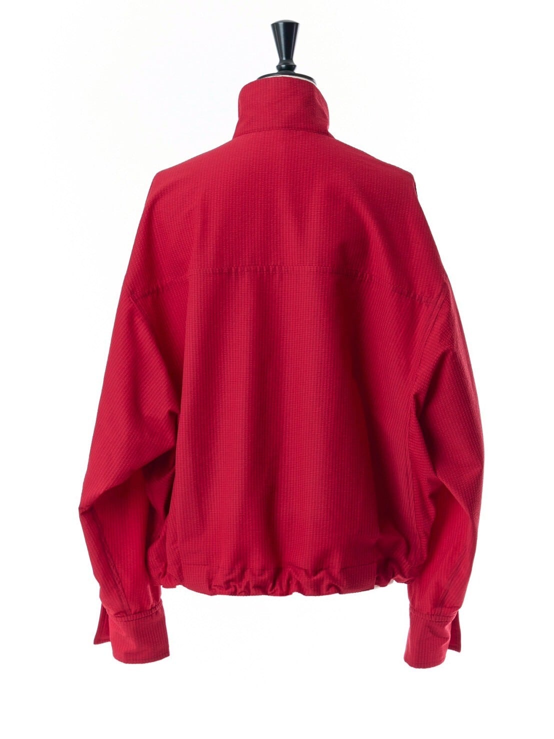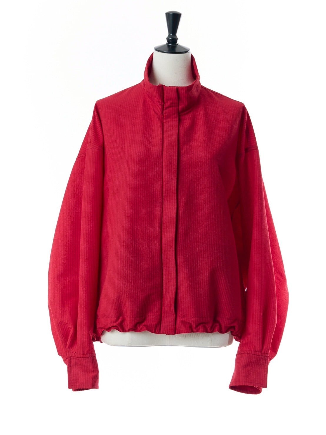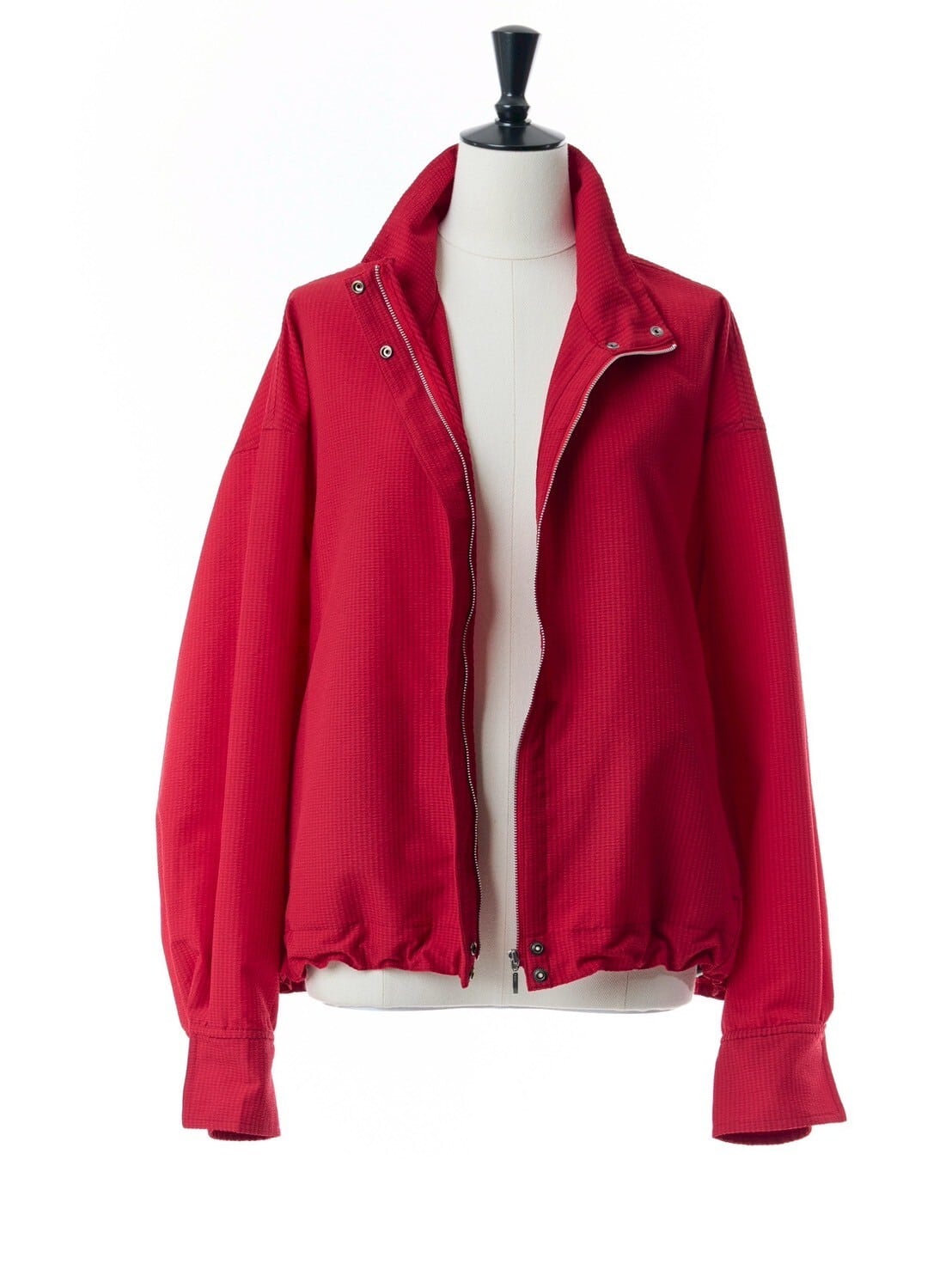 スポーティーになりやすいブルゾンをシャツのような袖ディティールや