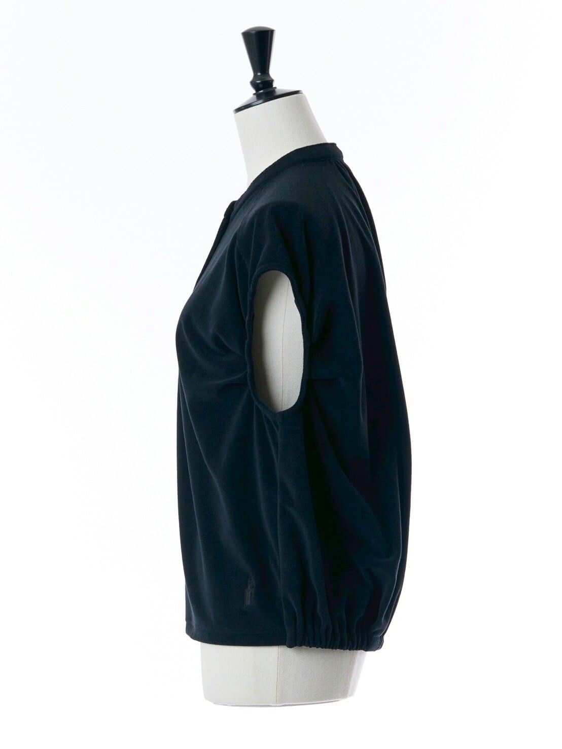 タックによる肩張りなどは出ず、二の腕を全部出さないフレンチスリーブ