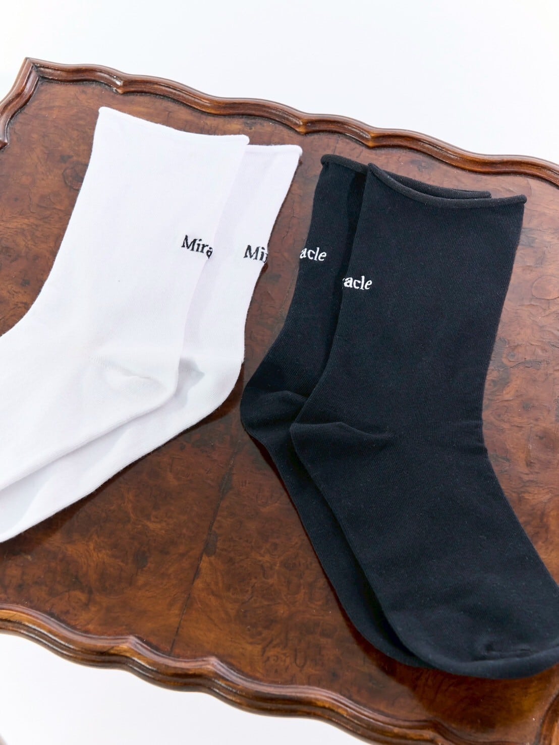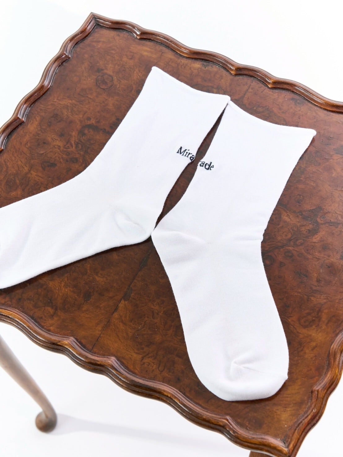 バック刺繍を施した遊び心のあるハイゲージソックスです。