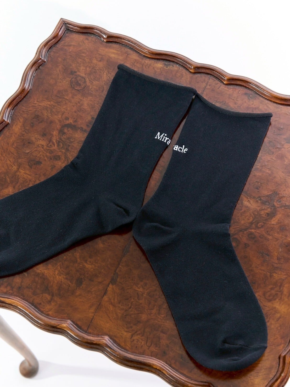 バック刺繍を施した遊び心のあるハイゲージソックスです。