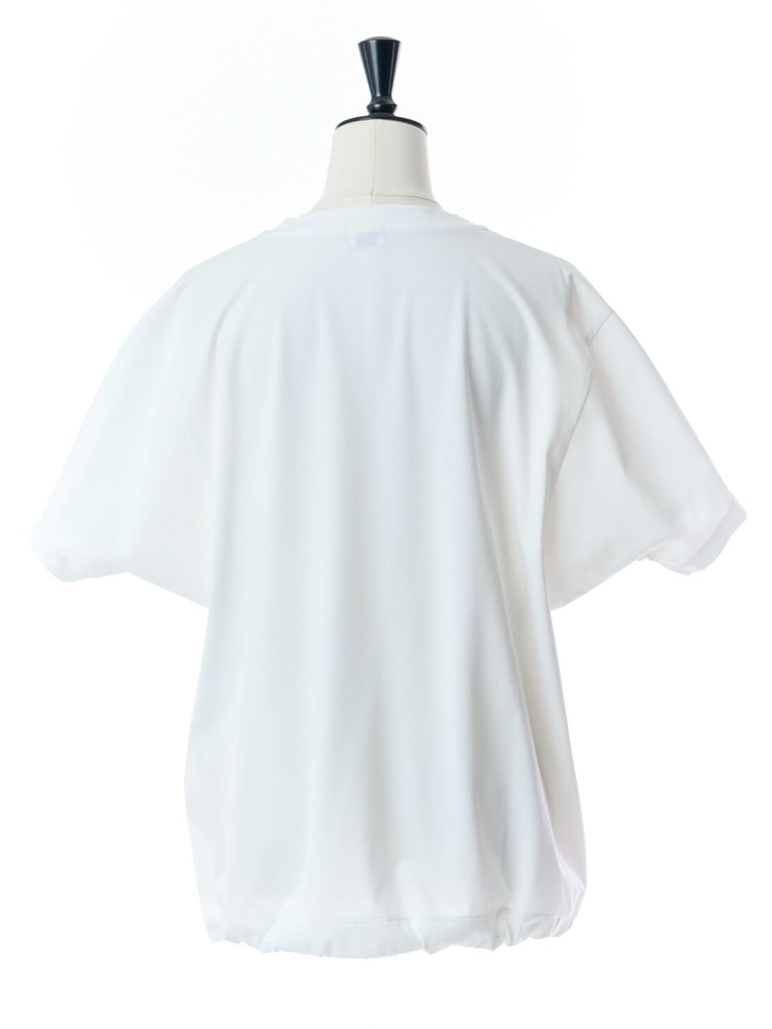 裾部分に生地分量をもたせ、内側にドローコードをつけサイズ調節が可能なので