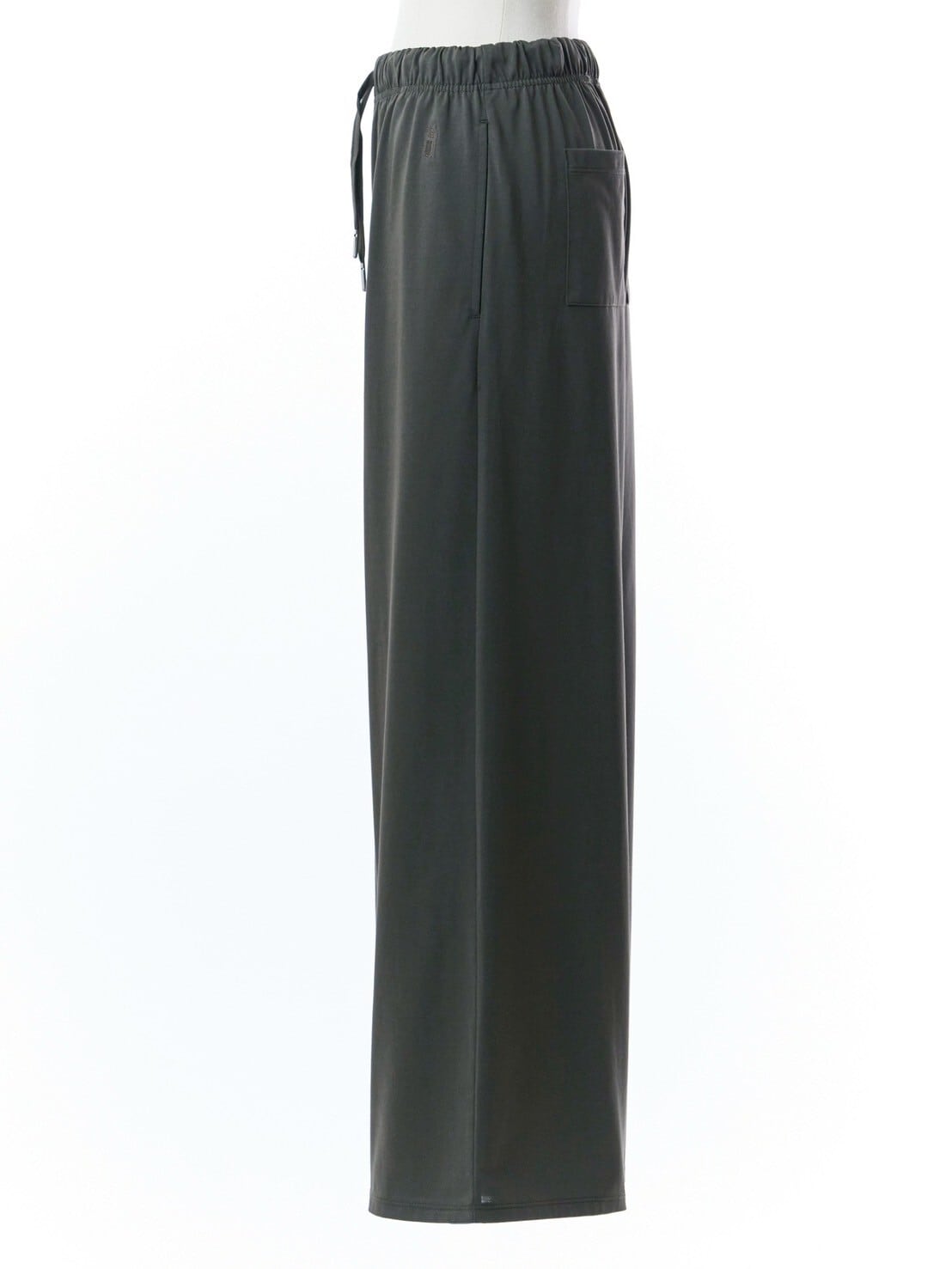 身体のラインを拾わず、落ち感とハリのあるワイドパンツ。
