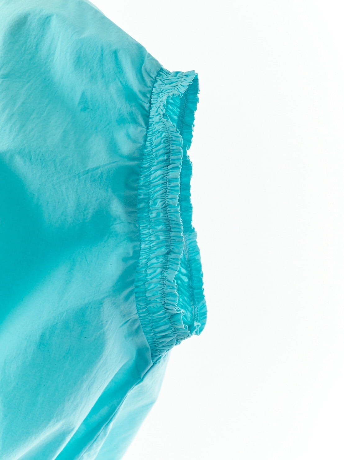 袖と裾部分にシャーリングを施し、自然な絞りディティーるが作れるので