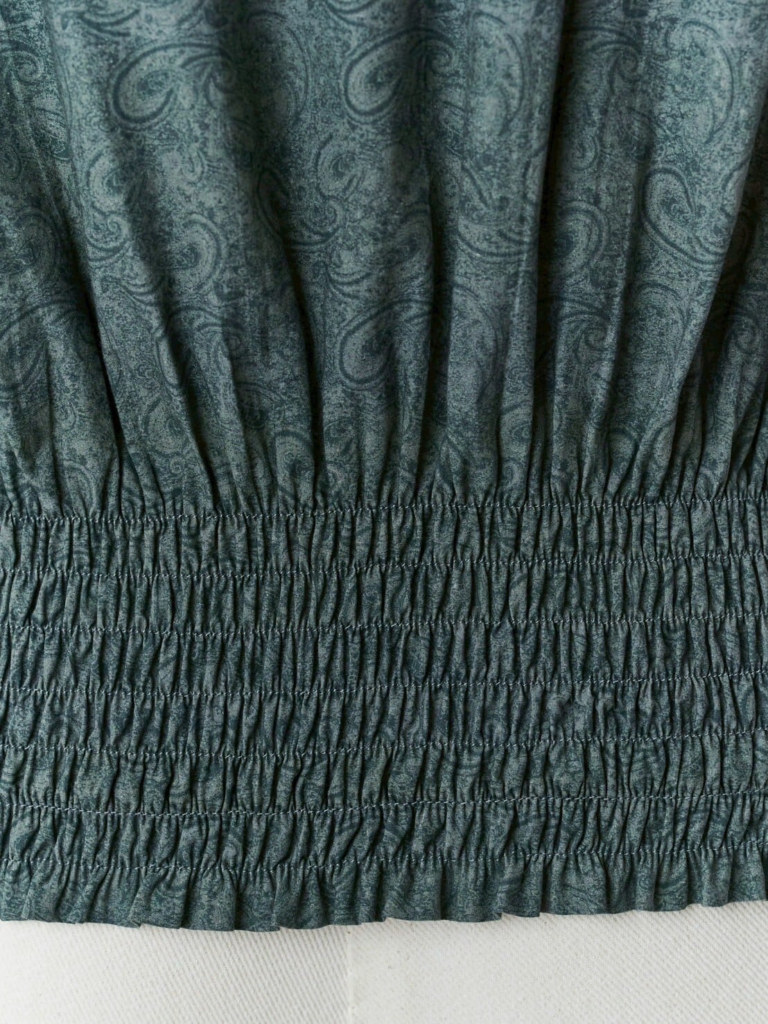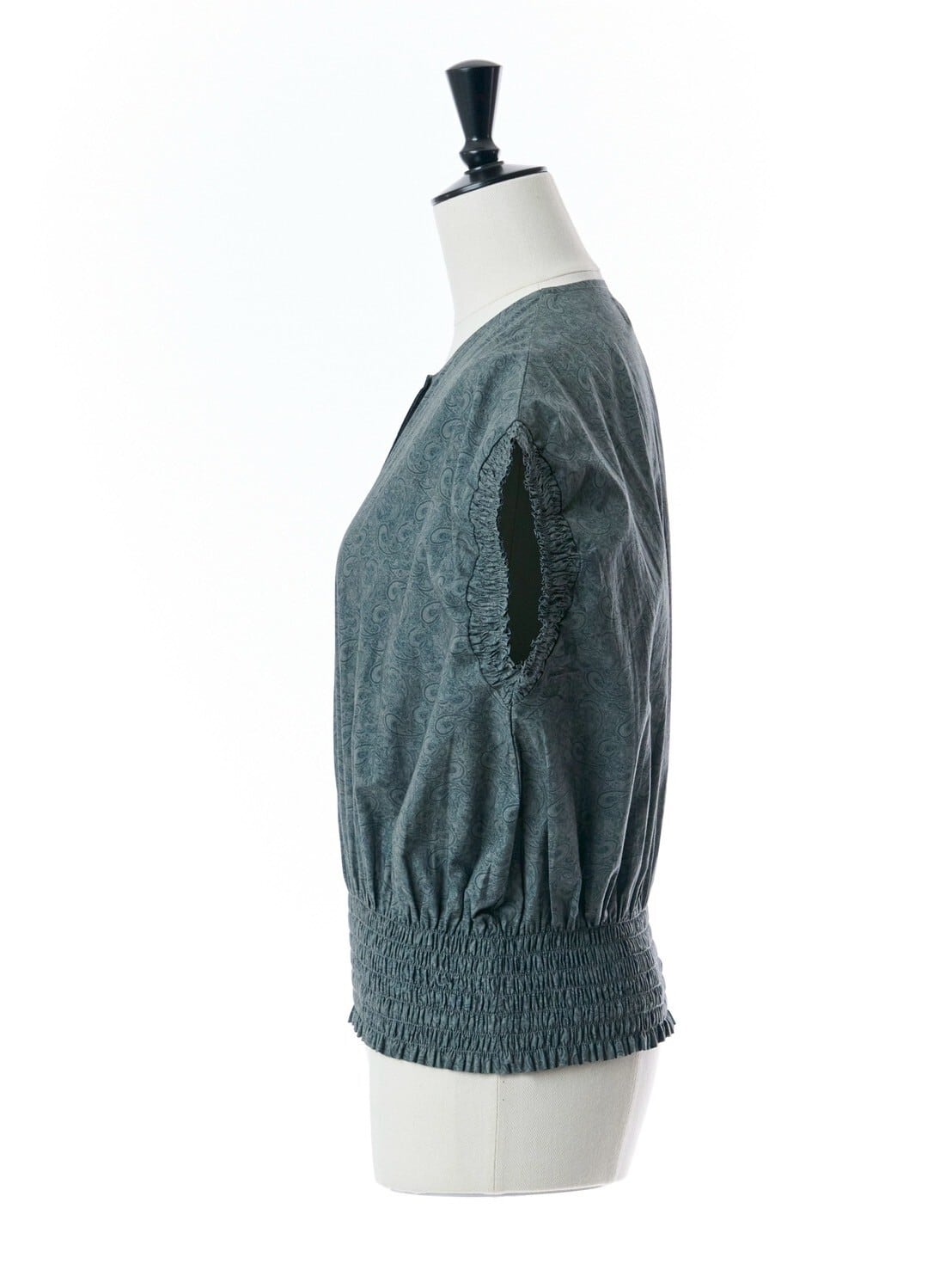 袖と裾部分にシャーリングを施し、自然な絞りディティーるが作れるので
