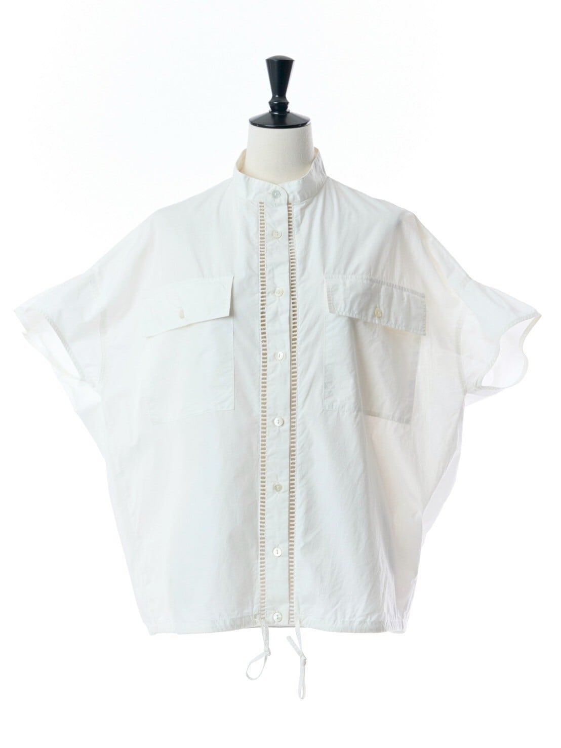 高めのバンドカラーが、辛めのインドシャツを作りあげました。