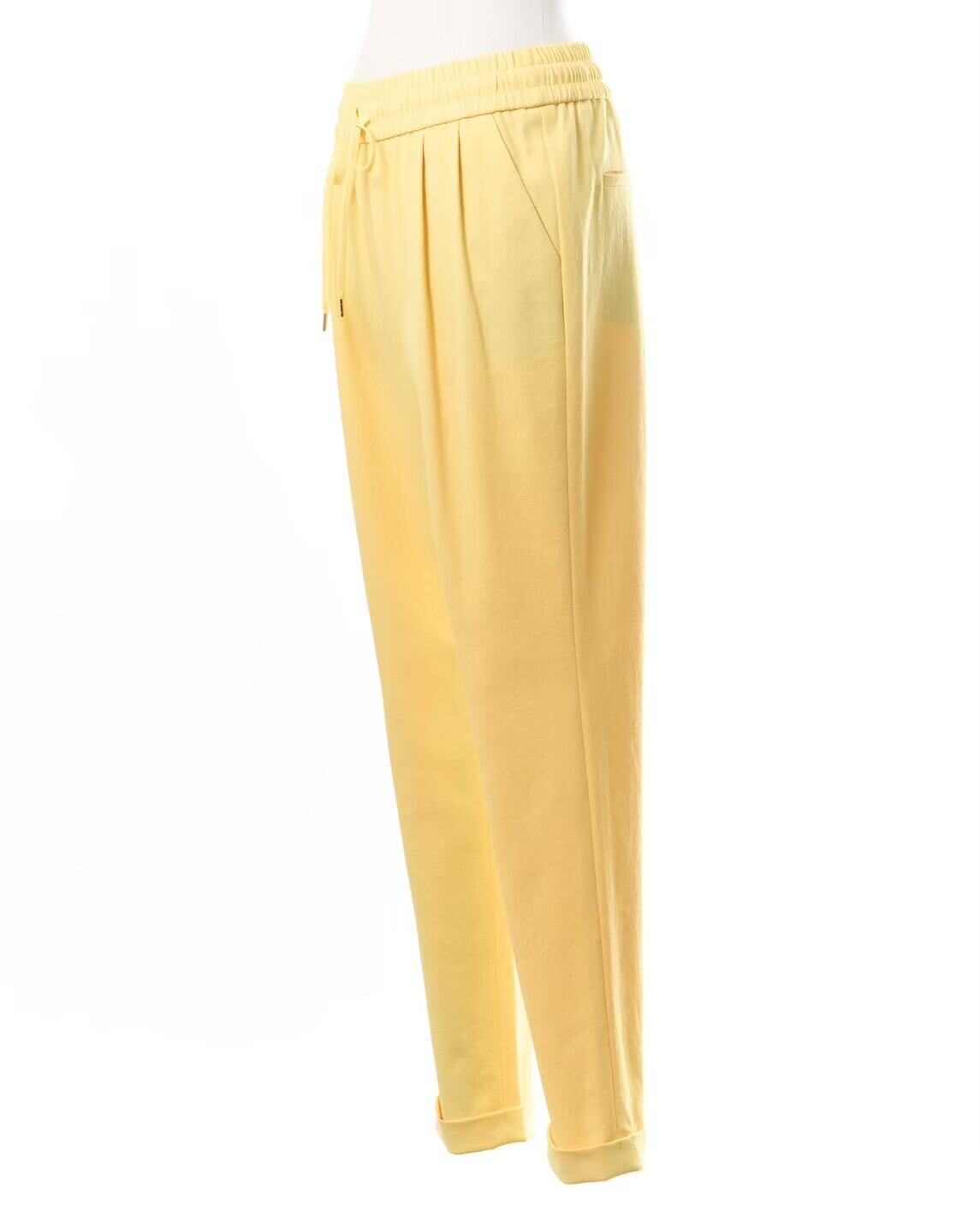 ポリエステルを配合した機能性高いテーパードダブルパンツ。