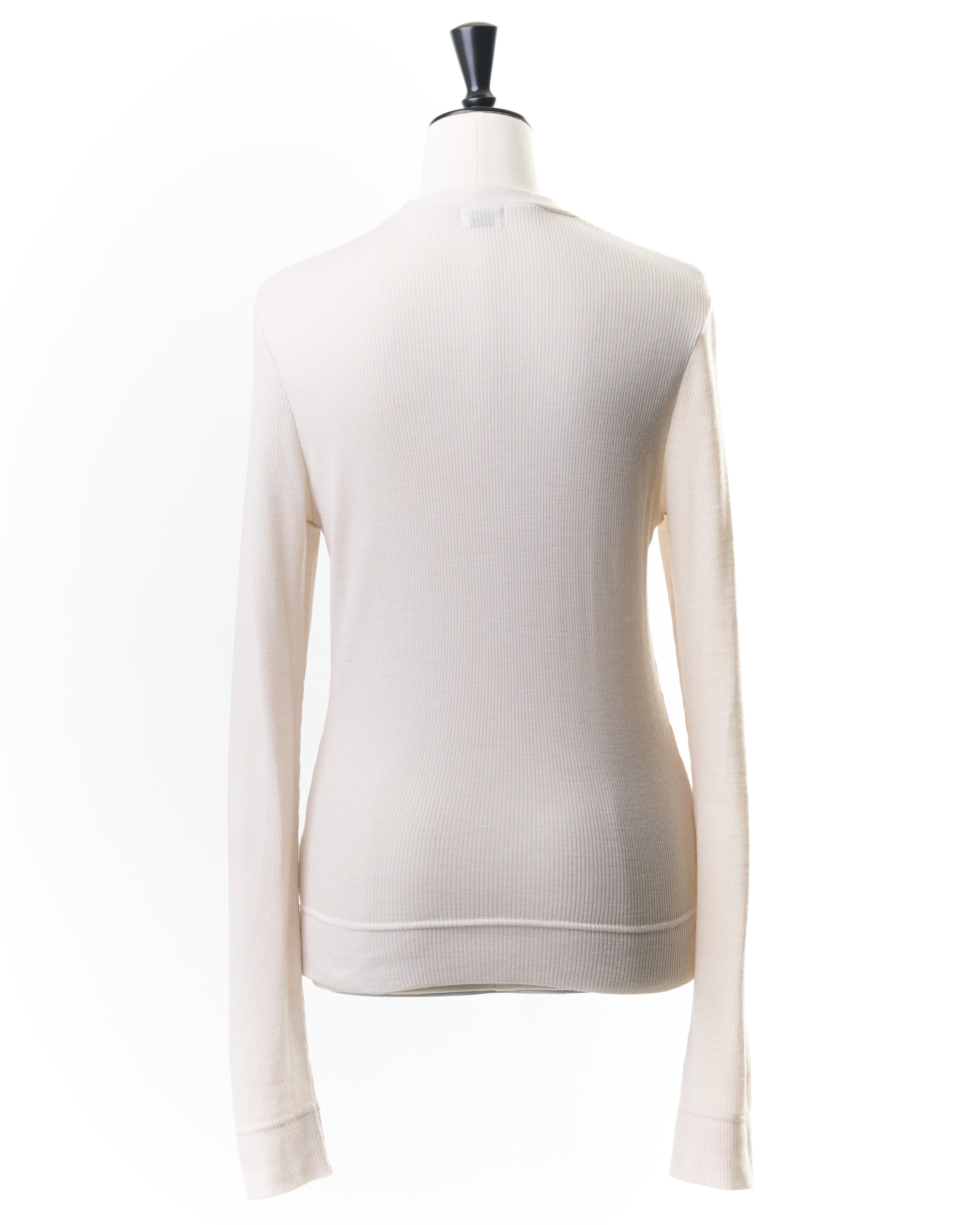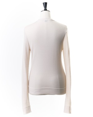 ニットのようななめらかな肌触りとナチュラルな光沢感があるテレコジャージーカットソーなので、ウール100%でありながら手洗いが可能になります。