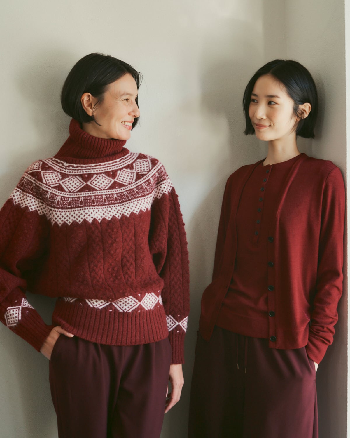 非常に繊細で細番手のウール100%を使用し、ウール糸本来のふくらみを活かした