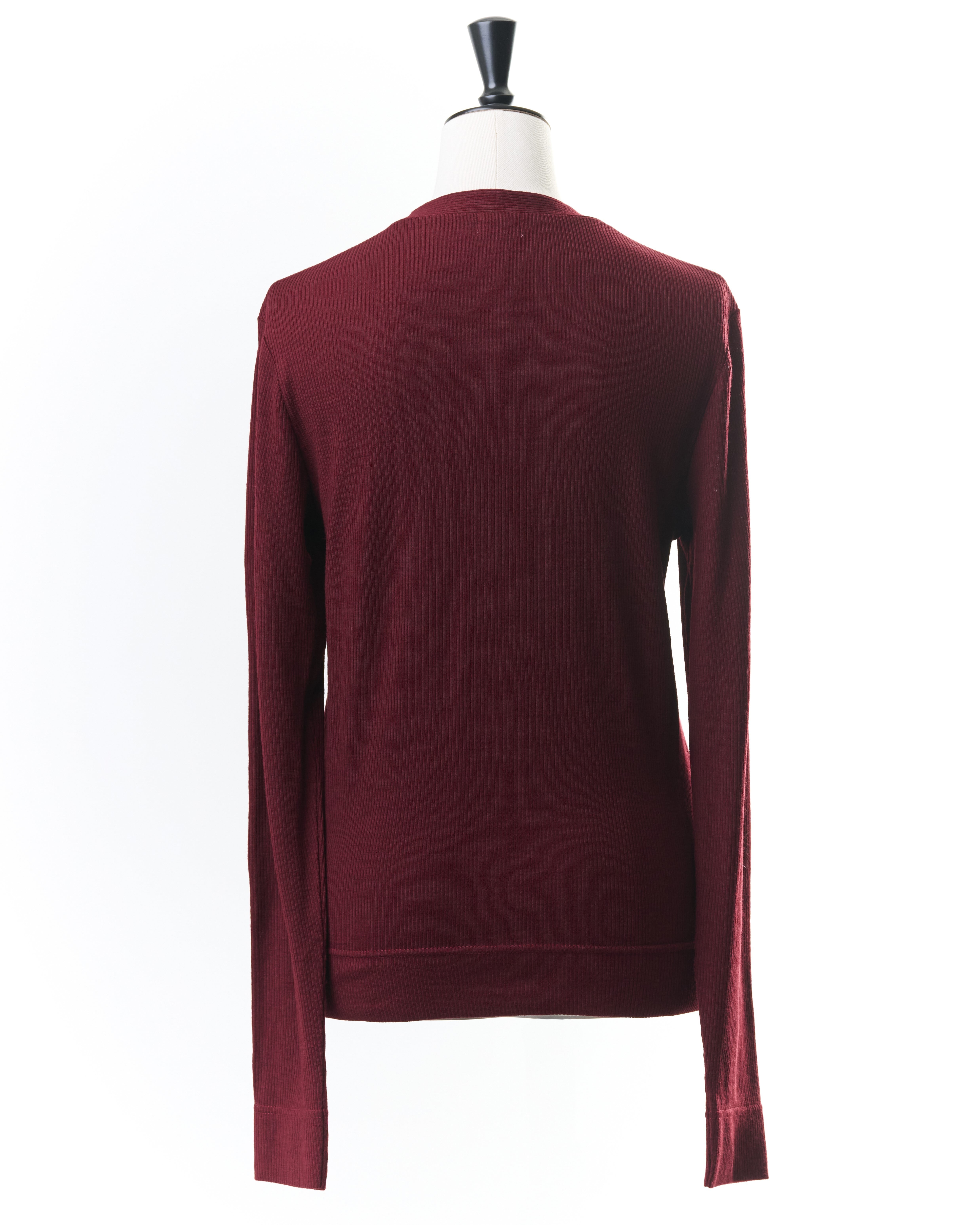 ニットのようななめらかな肌触りとナチュラルな光沢感があるテレコジャージーカットソーなので、ウール100%でありながら手洗いが可能になります。