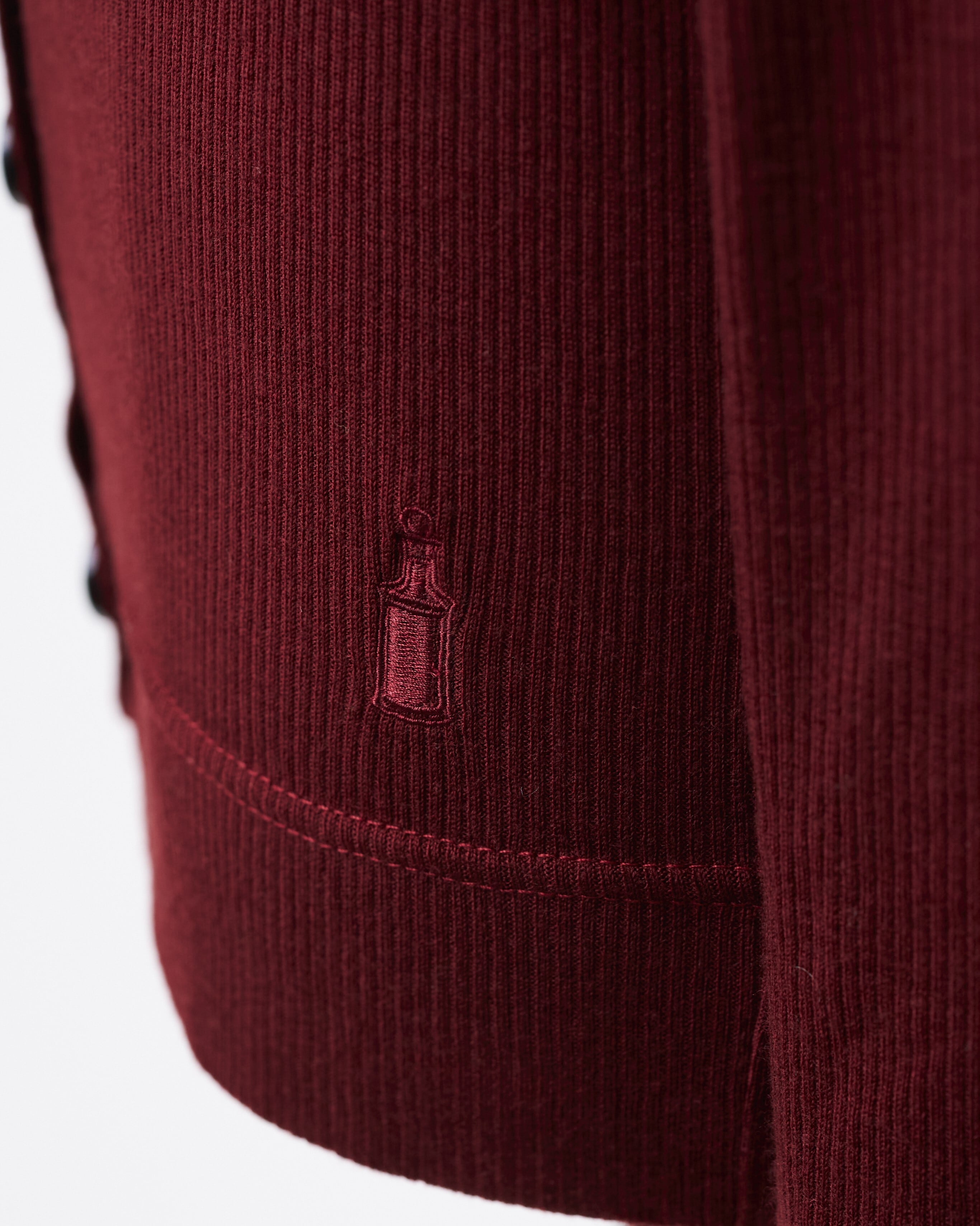 身体から絶妙に離れるサイズ感で作っているのと、Vネック仕様で前開きの際も襟周りが