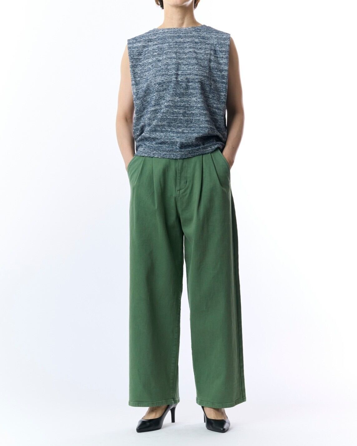 タックを入れることでウエストをダイレクトにださない仕様にしています。
