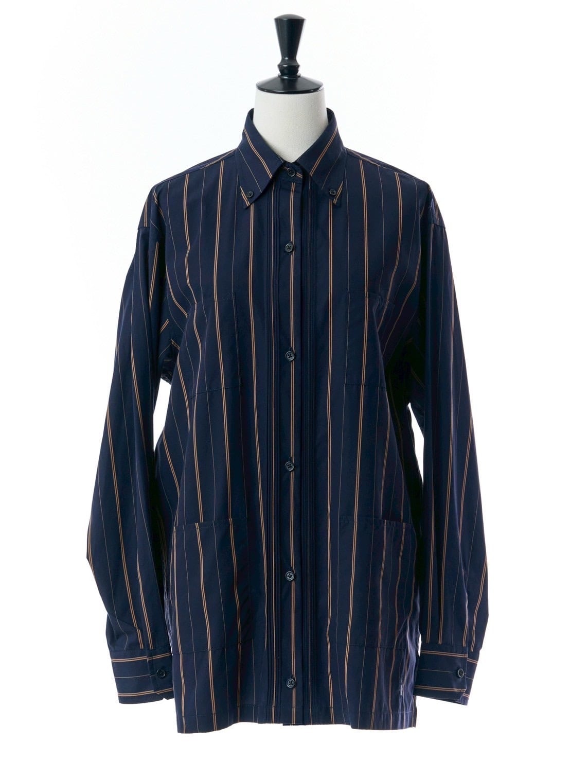 ピンタックをふんだんに使用し、ポケットも上下デザイン違いを